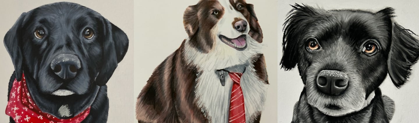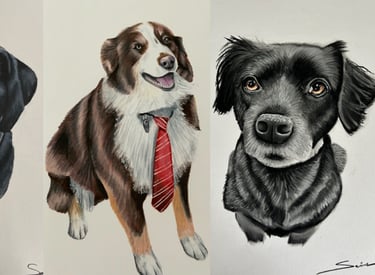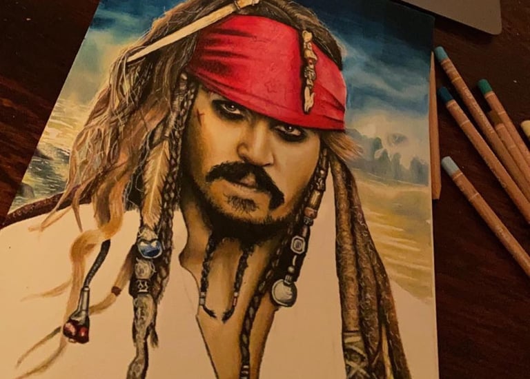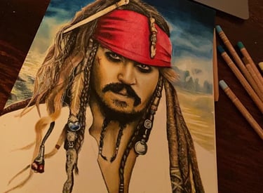 Drawings across many mediums including charcoal, colored pencil, and ink.