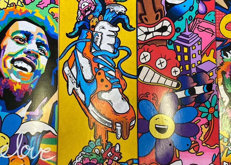 Hand painted skate and surfboards